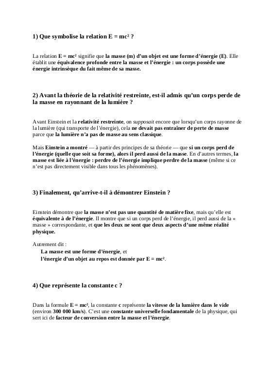 Relation masse énergie, loi de Wien, spectre de corps noir