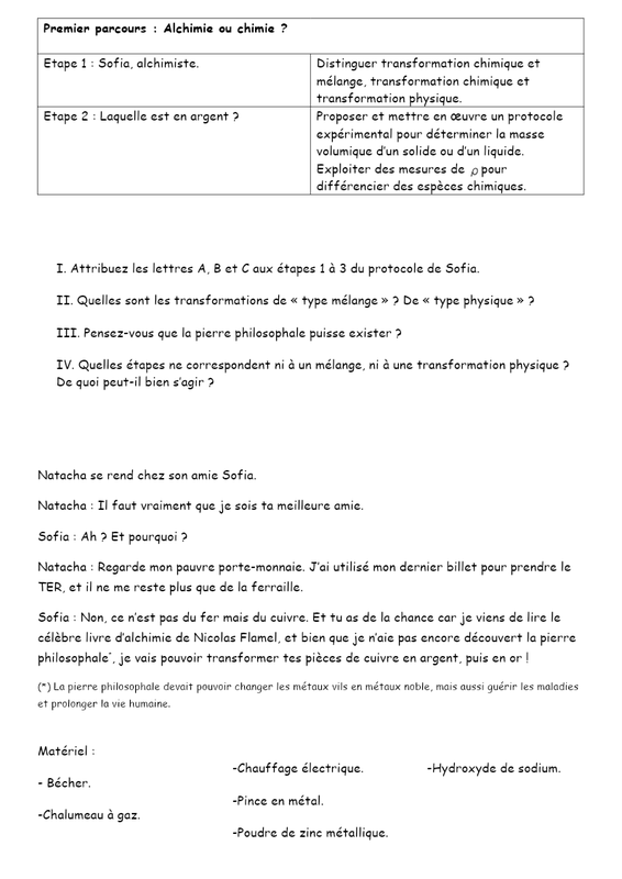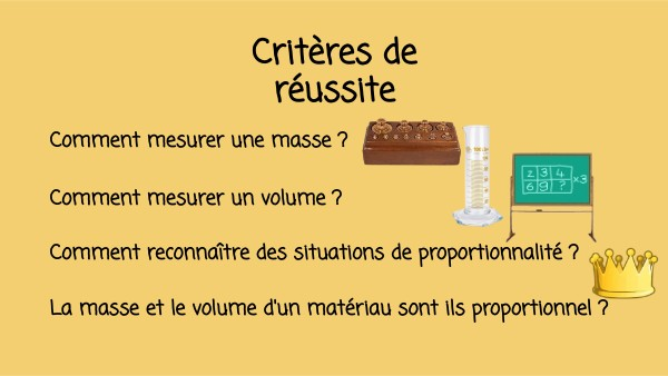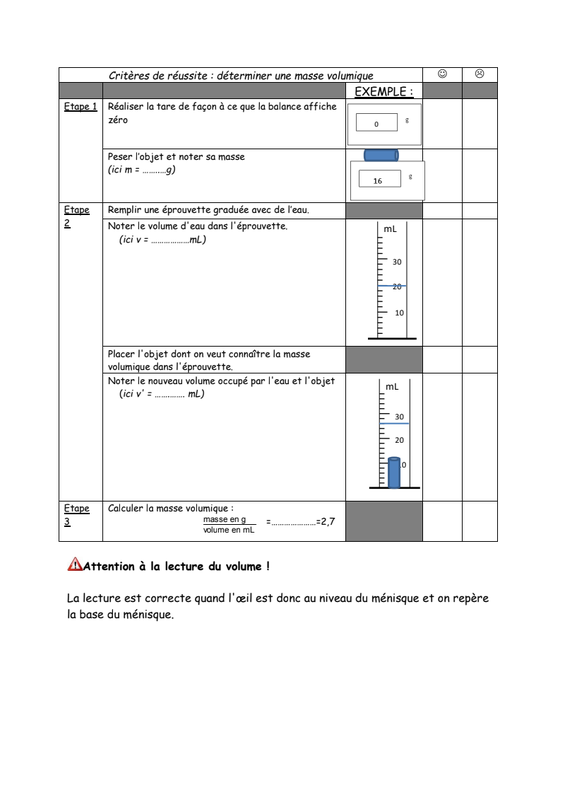 Distinguer transformation chimique, mélange et transformation physique. Masse volumique. Différencier des espèces chimiques.