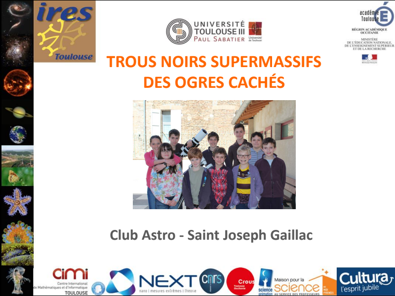 Jeudi 22 mars, le Club Astro Saint Jo a accueilli dans la salle des spectacles de Gaillac les élèves des classes de 6° de Saint Joseph, ainsi que ceux des classes de CM1/2 et CE2 de l’école Saint Théodoric.
