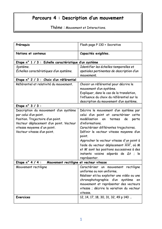 Système, échelle, référentiel, trajectoire, vecteur déplacement, vecteur vitesse moyenne et vecteur vitesse.