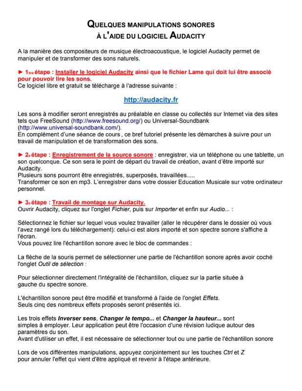 Aides manipulations sur Audacity