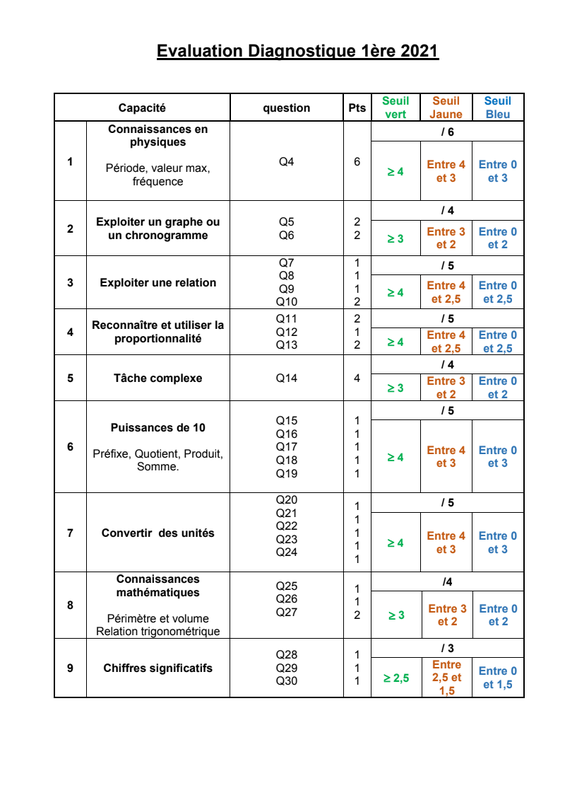 Seuils Vert Jaune Bleu 1Ère 2021