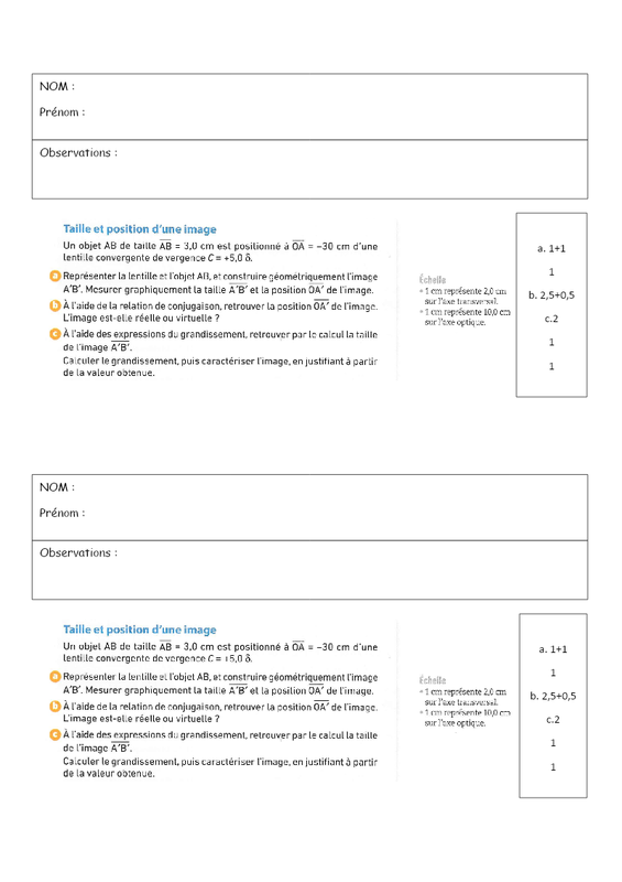 Lentille convergente, image, grandissement, relation de conjugaison, synthèse additive et soustractive, absorption, diffusion et transmission.