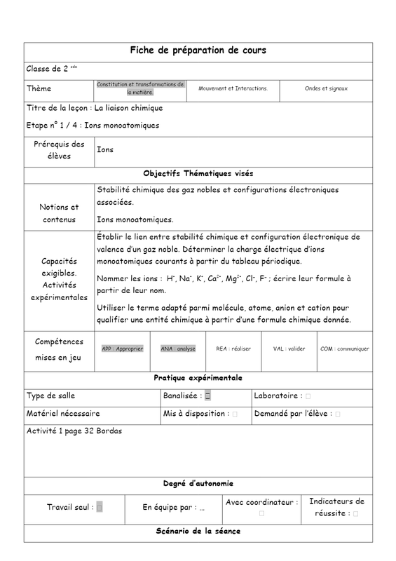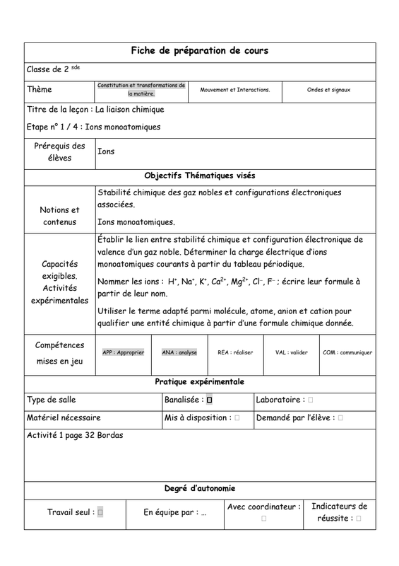 Stabilité chimique des gaz nobles et configurations électroniques associées. Ions. Modèle de Lewis de la liaison de valence, schéma de Lewis, doublets liants et non-liants.