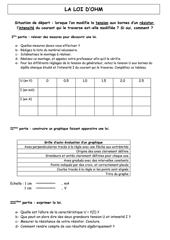 Élaborer et mettre en œuvre un protocole expérimental simple visant à réaliser un circuit électrique. - Relation tension-courant : loi d’Ohm.
