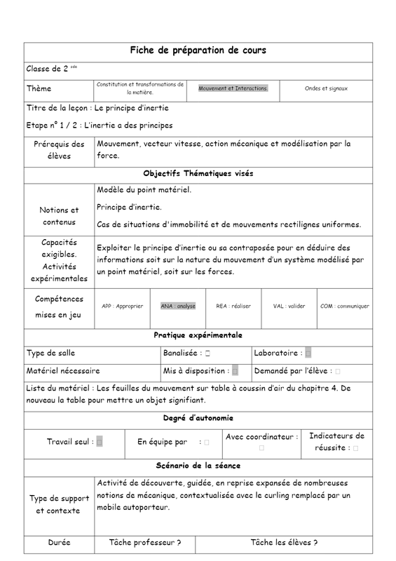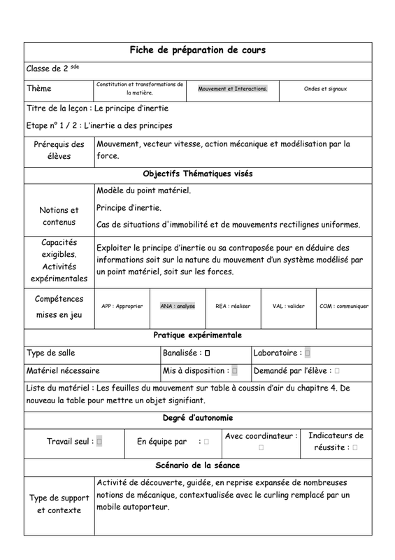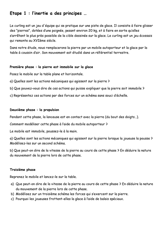 Principe de l'inertie, contraposée, immobilité, mouvement rectiligne uniforme