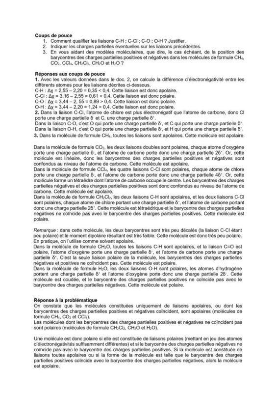 Schéma de Lewis, lacune électronique, géométrie des entités, électronégativité, polarisation d'une liaison, polarité d'une entité.