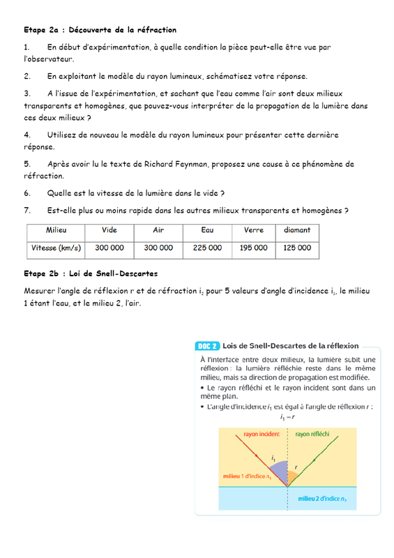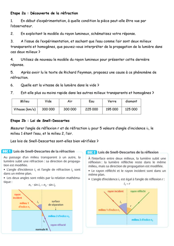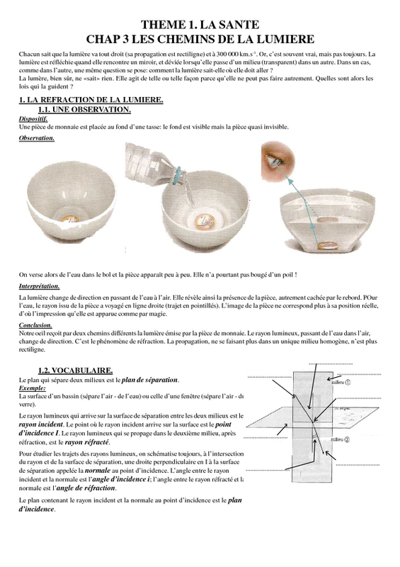 THEME 1. LA SANTE CHAP 3 LES CHEMINS DE LA LUMIERE On verse alors de l’eau dans le bol et la pièce apparaît peu à peu. Elle n’a pourtant pas bougé d’un poil ! Interprétation. La lumière change de direction en passant de l’eau à l’air....